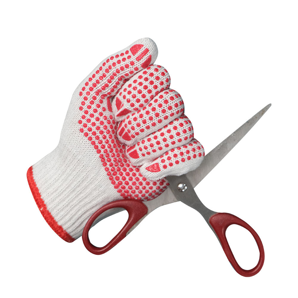 Durable dotted cotton gloves designed for construction safety with anti-slip grip and breathable comfort.