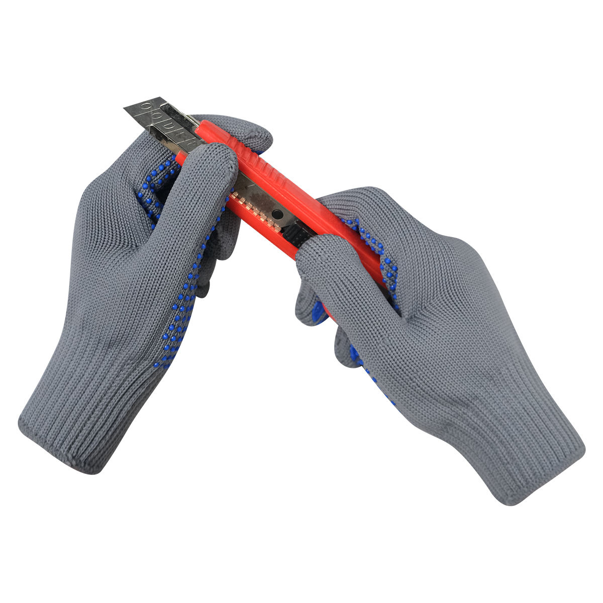Durable cut-resistant dotted cotton gloves designed for industrial, garden, and construction safety applications.
